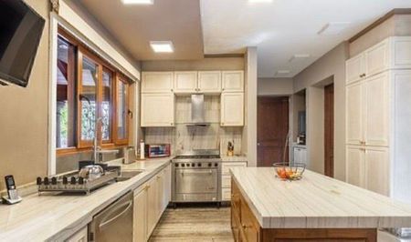 - Cocina gourmet, sala y comedor con acceso a un exuberante jardín