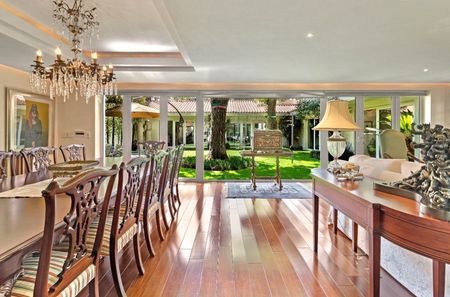 La decoración es muy elegante, llena de detalles de buen gusto que van desde un puente de madera en el acceso principal que pasa sobre una fuente y muro de agua, impresionante vestíbulo de acceso con doble altura y palmeras decorativas, carril de nado contra corriente, calefacción, equipo de cámaras de seguridad, persianas eléctricas, área de asador y acabos de lujo son sólo algunas de sus características.