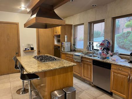 Sala de juegos con mesa de billar (la dejan porque se hizo a medida y hace juego con los muebles de madera)