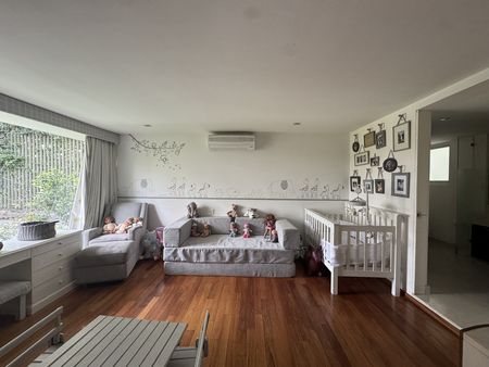 La residencia ofrece 4 recámaras, incluyendo una suite principal con 2 baños, 2 vestidores y terraza privada. Sus áreas sociales están perfectamente integradas al jardín, con salas de estar, sala de juegos, comedor y estudio.