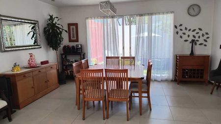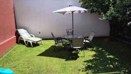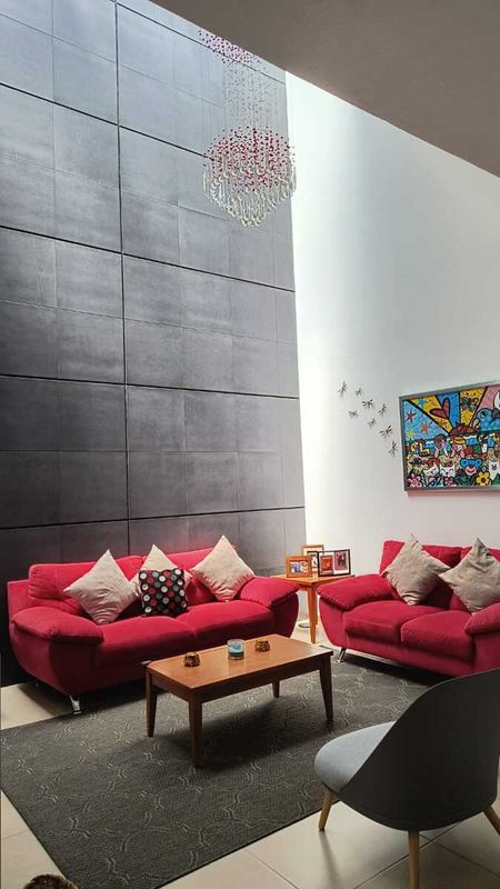 Sala, comedor, cocina integral, área de lavado, estacionamiento techado para dos autos, jardín.