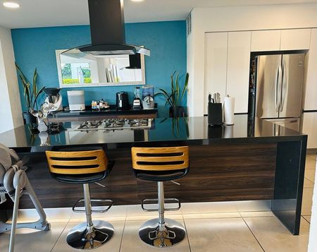 Su elegante Bar central enlaza la cocina, el comedor y la sala, logrando un espacio abierto, cálido y funcional.