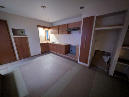 Sala, comedor, cocina, medio baño, y 1 recámara con baño completo y vestidor.
