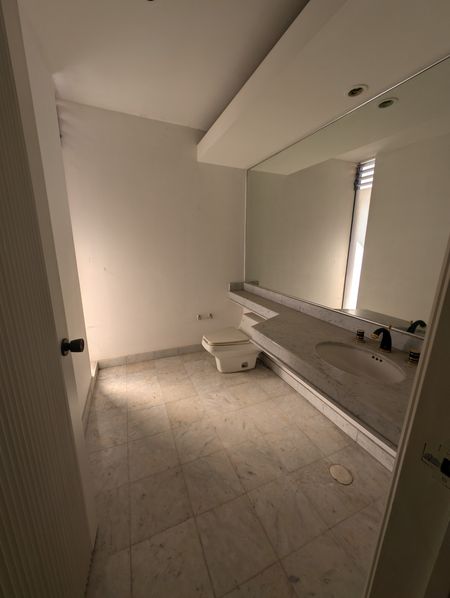 Sala, comedor, cocina, medio baño y 2 recámaras; la primera con baño completo, tina y clóset, la segunda con baño completo y vestidor.
