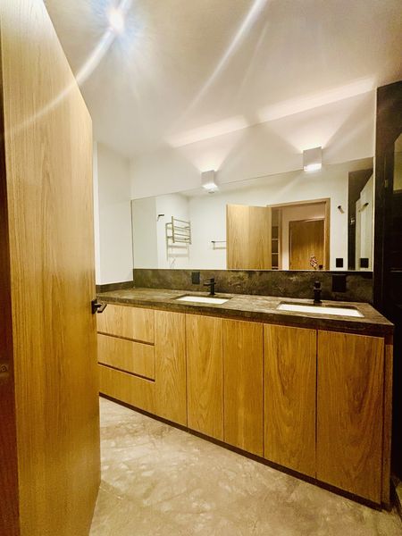 Cuenta con dos recámaras con aire acondicionado,, la principal con walking clóset y baño, estudio o tercer recámara, un 2do baño completo común.