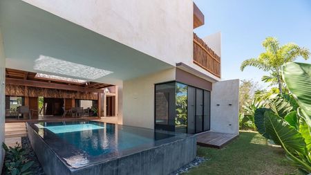Preciosa casa de diseño, ubicada en Yucatán contre club con opción a venta y renta. Impresionante palapa artesanal de diseño natural y al mismo tiempo con un confort y equipamiento inigualable