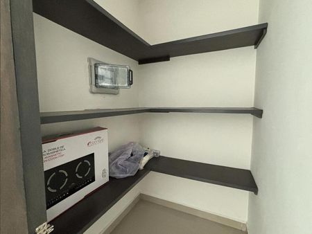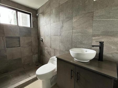 Consta de sala-comedor con balcón, cocina integral con parrilla eléctrica, alacena, la recámara principal con clóset y baño, segunda recámara con clóset, baño completo fuera que da servicio también a las visitas, área de estudio y cuarto de lavado.