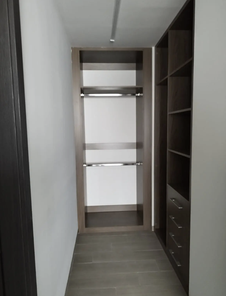 Recamara principal con vestidor y bano completo, dos recamaras con closet que comparte bano completo.