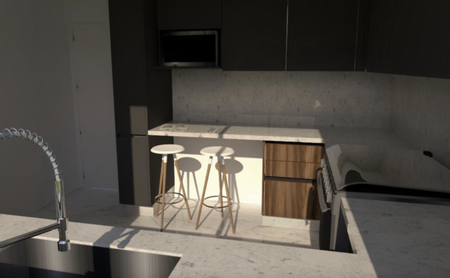 Cocina de lujo totalmente equipada, con mármoles y granitos importados que aportan elegancia y funcionalidad.