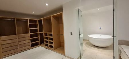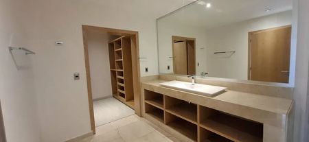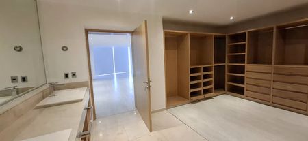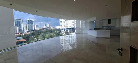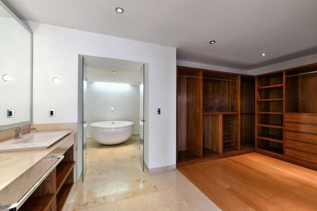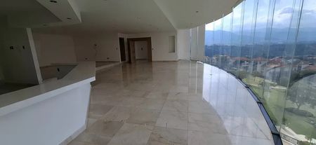 distribuido en Tres recámaras con vestidor y baño propio cada una; la principal con un increíble walking closet y tina en el baño. Sala, comedor , family , cocina abierta , alacena , oficina afuera del depa, cuarto de servicio y bodega .