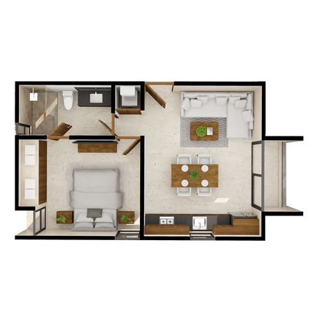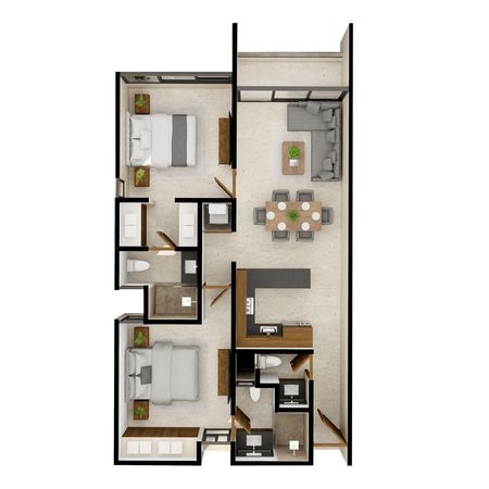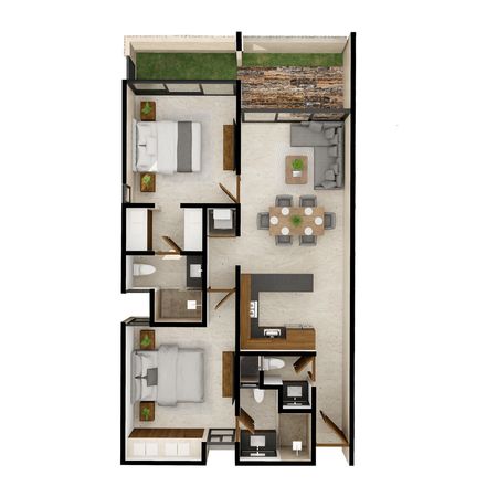 Modelo C (Aleman) | 1 Recámara | 66m2 (totales)