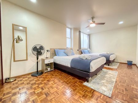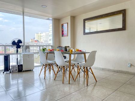Airbnb. Cuenta con 3 recámaras, 2 baños, sala, comedor, cocina integral, área de servicio.