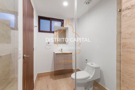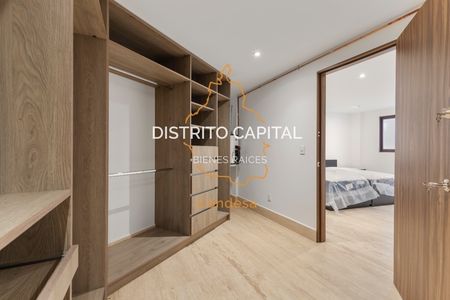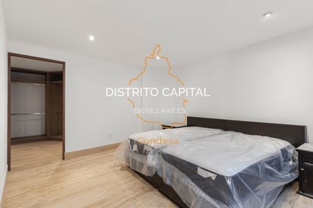 El departamento cuenta con un solarium para disfrutar de los días iluminados, además de aportar mucha luz natural al área de la sala. La habitación es amplia con espacio suficiente para una cama King Size con sus dos burós y espacio suficiente para un sillón. Su vestidor es más amplio que el estándar de su tipo.