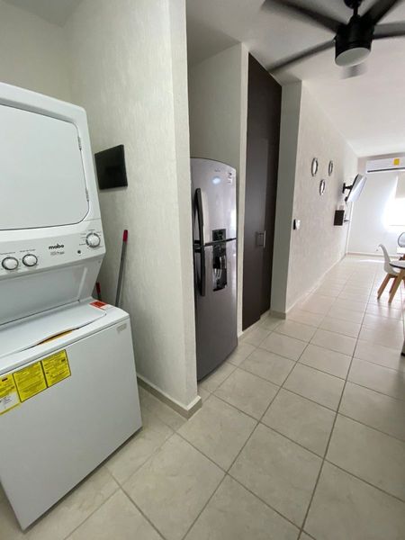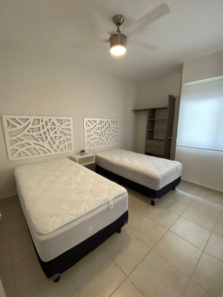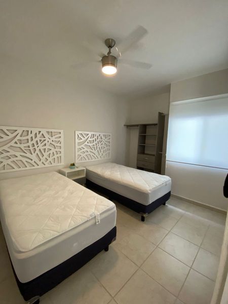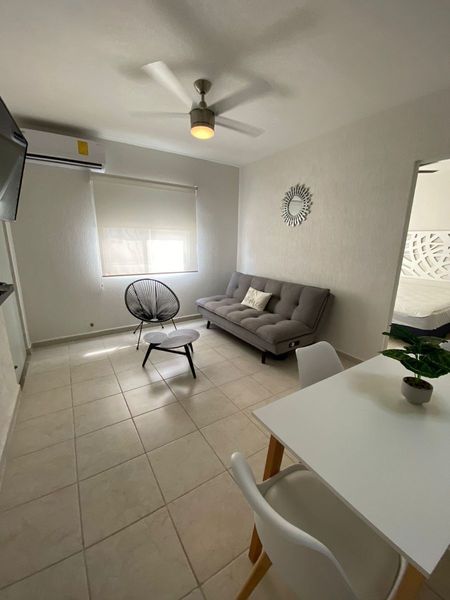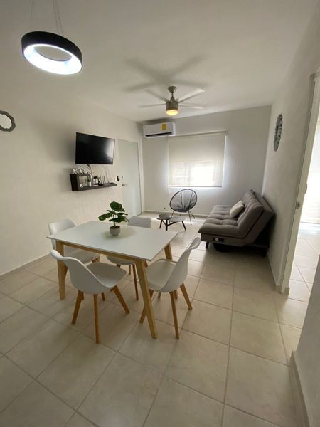 Departamento de 2 recamaras 1 baño equipado y amueblado en planta baja con cebtro de lavado areas comunes alberca juegos infantiles, seguridad