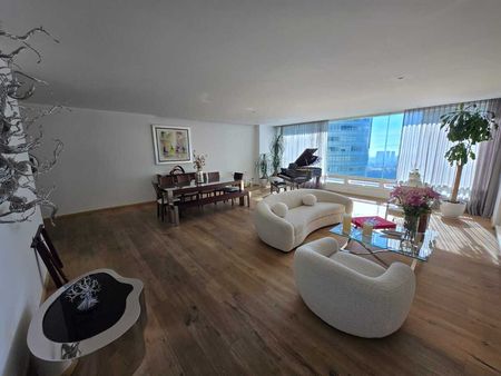 Excelente departamento en la avenida Santa Fe con lindos acabados y 240m2 con una excelente distribución, tres cómodas recamaras cada una con su baño, la principal con vestidor, sala- comedor, family, amplia cocina con isla móvil que permite cerrarse y abrirse para adaptarse mejor a sus necesidades, cuarto servicio, dos lugares de estacionamiento. Con una distribución insuperable en la calle mas lujosas de Santa Fe, muy cerca de restaurantes, cafés, city market y del hermoso Parque la mexicana.