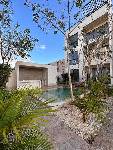 Departamento en renta ubicada en la zona norte de Mérida, en Temozón, una de las áreas con mayor crecimiento y plusvalía de la ciudad. Su excelente ubicación ofrece fácil acceso a Períferico.