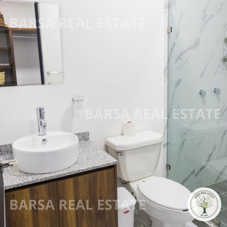 2 baños completos con canceles de cristal y muebles de paño de parota
