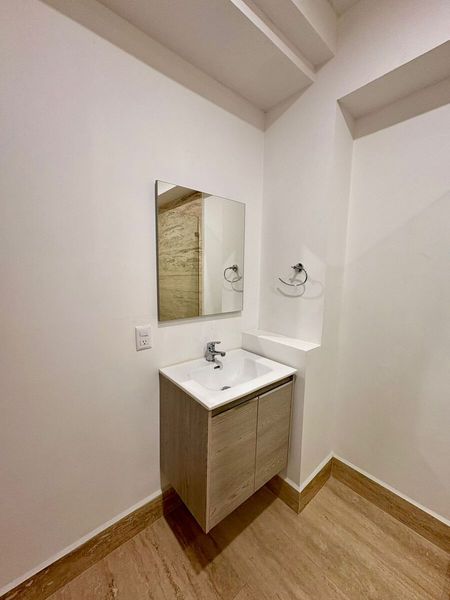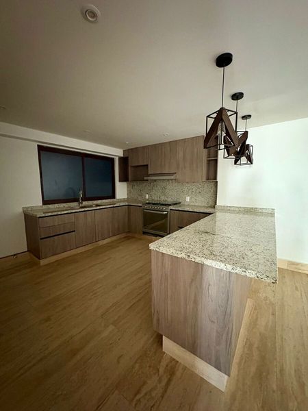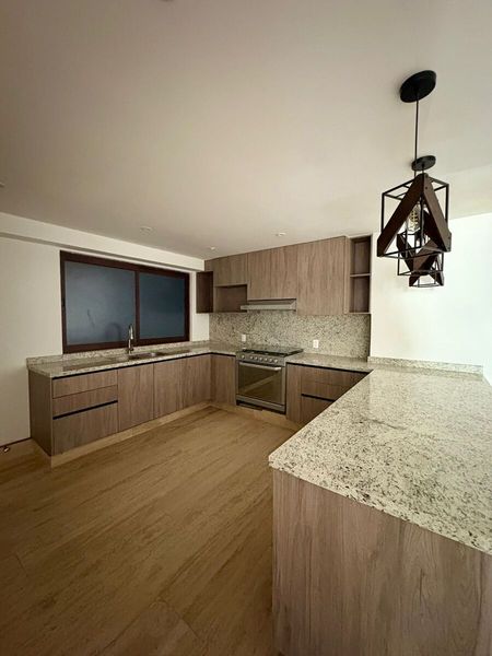 El departamento en renta con buenos acabados modernos de mármol y madera, buen tamaño, buena iluminación.