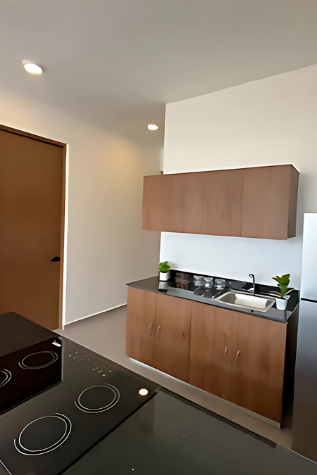 Equipamiento: Parrilla eléctrica 4 quemadores, gavetas inferiores, closets semi vestidos, cancel fijo de cristal templado en baños, calentador eléctrico.