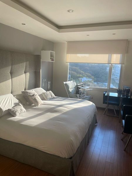 El departamento tiene muy buenos acabados de lujo, ventanales grandes, muy iluminado.