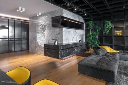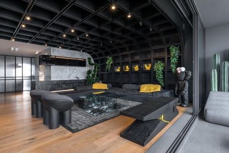 Casa club con espacios de uso diverso, incluyendo salón de belleza, barbería, cafetería, lounger bar, business center y restaurante con terrazas y chimeneas exteriores.