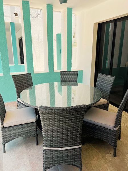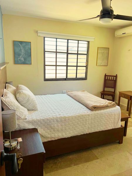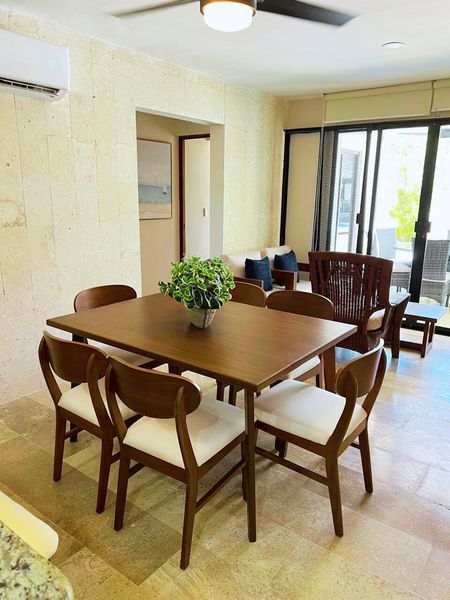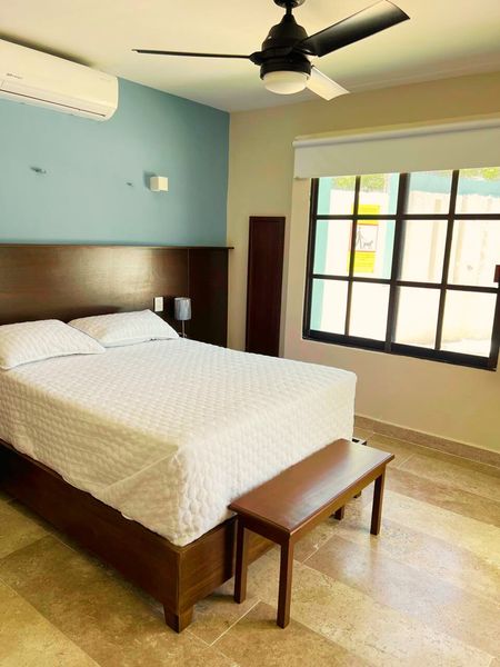 Disfruta del clima cálido de Yucatán en la alberca grande del desarrollo, ideal para relajarte, convivir con la familia o disfrutar con amigos. El departamento está completamente amueblado y equipado: cuenta con 3 recámaras, cada una con cama matrimonial, aire acondicionado y ventilador de techo. La sala y comedor también tienen A/C y ventilador para mantener el confort en todo momento.