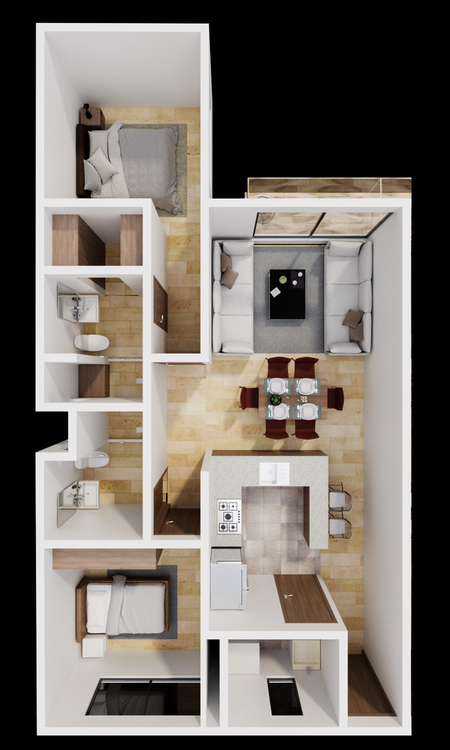 • Baño completo de visitas (el cual lo comparte con una de las recamaras)