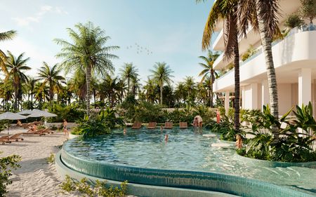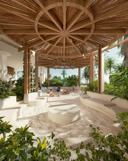 AMENIDADES: Lobby, motor lobby, terraza bar, restarurante, cuarto de continental, alberca para adultos, jacuzzi, alberca para niños, juegos acuáticos, camastros, zona de hamacas, fire pits, sandpit, cancha de volley y fut playero, gym wellness.