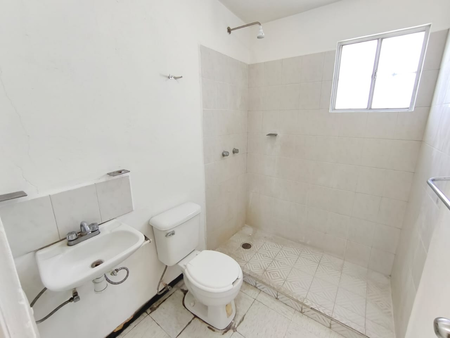 Con 60 m² de construcción, la propiedad cuenta con 2 recámaras, 1 baño completo, medio baño para visitas, sala-comedor y 1 estacionamiento comunal. Los pisos en todas las áreas son prácticos y de fácil mantenimiento.