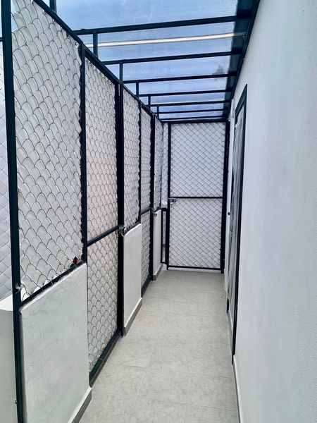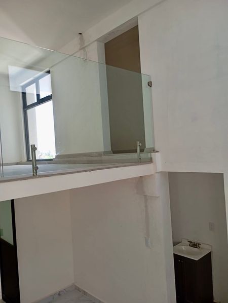 40m2 con una estancia amplia de doble altura con cocina abierta, área de lavado, un baño y una gran recamara en el segundo piso y un lugar de estacionamiento para moto