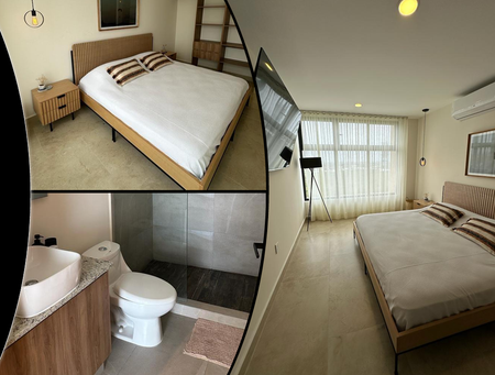 • Recamara 1 con cama, burós, T.V. aire acondicionado, closet vestidor, vista al norte, baño completo