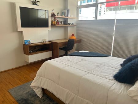 Departamento en venta con una excelente ubicación, con tres recámaras, dos baños completos, sala comedor, cocina abierta y área de lavado. El cuarto de servicio se encuentra el la azotea. Un lugar de estacionamiento. Remodelado. Exterior con balcón. Vigilancia 24/7