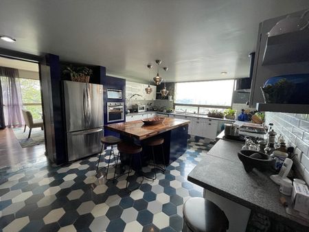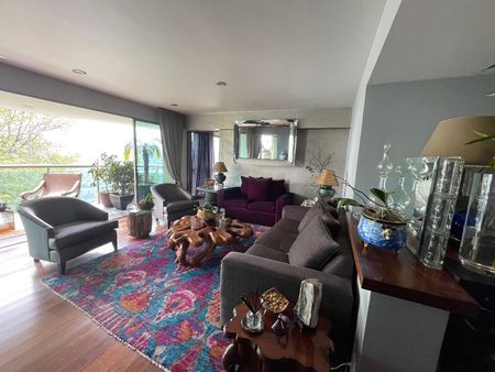Muy buen departamento con preciosa vista, mucha luz, terraza de 25 m2 para poner mesa y asador, cuenta con sala, comedor, family, muy buena cocina y área de servicio. El área de las recámaras está separada, son 3 recámaras con baño y vestidor, la principal muy grande con super vestidor , y también cuenta con un cuarto de TV grande.