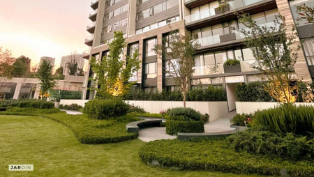 Moderno concepto residencial, amplios espacios abiertos, con un gran parque privado.
