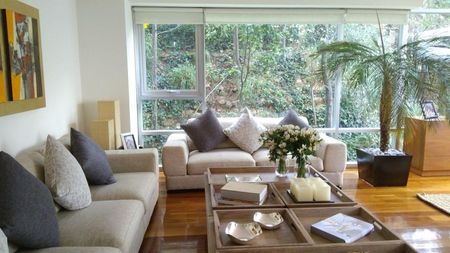 El departamento tiene buenos acabados, tiene ventanales amplios, vista verde desde todas las ventanas.