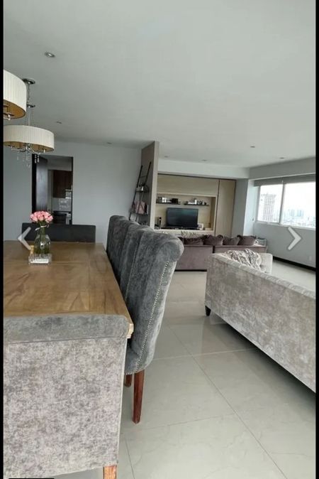 El departamento fue remodelado hace poco, es de muy buen tamaño, con buenos acabados, tiene ventanales amplios y le permite la entrada de muy buena luz natural con excelente vista.