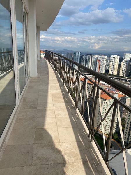 Totalmente terminado, con acabados de lujo, techos altos, mucha luz, piso alto con vista a Santa Fe, amplio balcon. La estancia es muy amplia, muy bonita cocina, family, 3 recámaras con baño, MUEBLES EMPOTRADOS.
