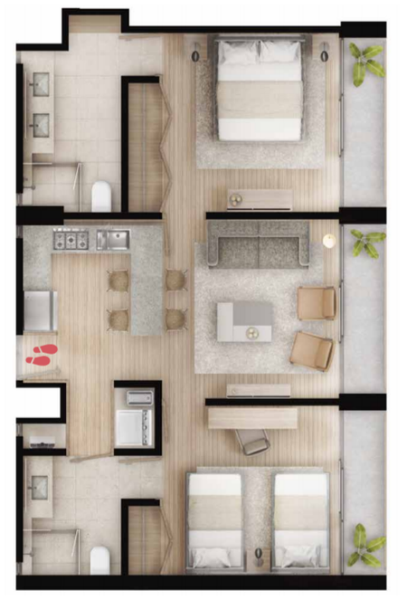 Con gran ubicación al sur de la ciudad, magnifico departamento en proyecto moderno y nuevo de pocos departamentos, excelente orientación e iluminación.