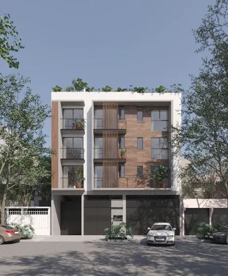 Desarrollo que contará con 3 niveles, 10 departamentos de 65 a 175 m2, de 2 y 3 recámaras, algunos con balcón, terraza y Roof Garden Privados y lo que necesitas con 2 estacionamientos que no se compartan con vecino.