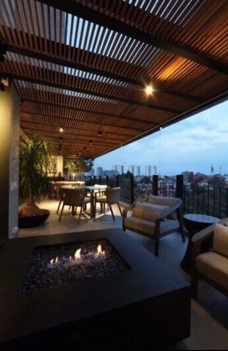 El Departamento consta con estancia amplia con bar, sala, comedor, con una terraza muy amplia con firepit antecomedor, 3 amplias Recámaras con baño la principal también tiene terraza, así como la oficina y una de las recamaras.