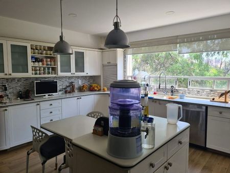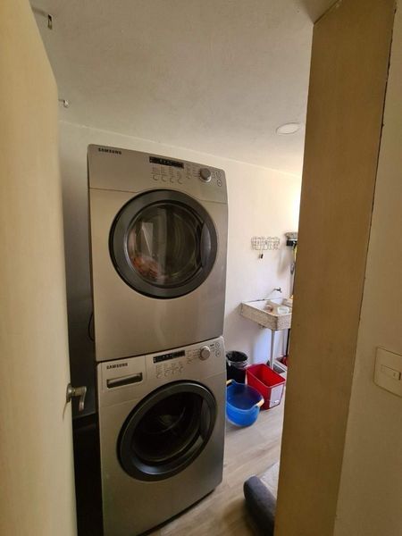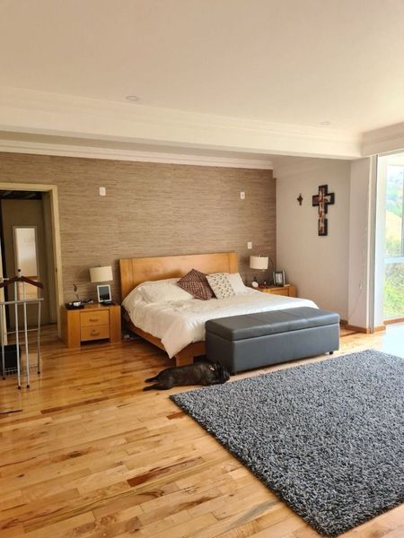 La planta baja alberga una espaciosa sala y comedor, un elegante medio baño y una cocina sumamente amplia, acompañada de una alacena de generosas dimensiones. También cuenta con un cuarto de servicio con baño y closet, así como un cuarto de lavado.