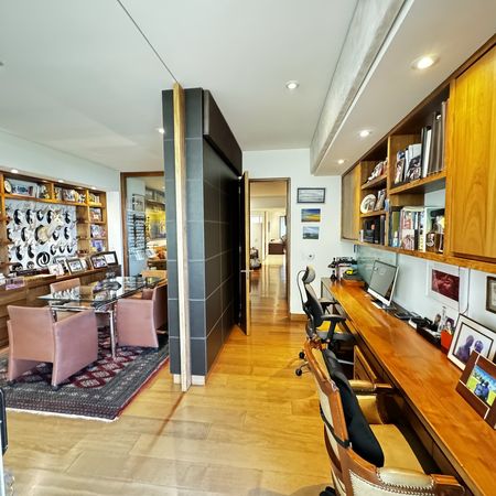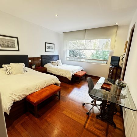 Cuenta con vestíbulo, sala, comedor, pantry, cocina integral, baño visitas, estudio, sala TV, 4 recámaras con vestidor y baño cada una.
