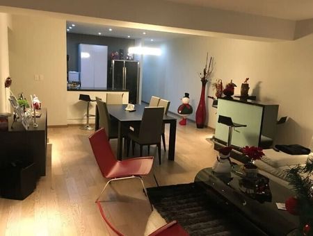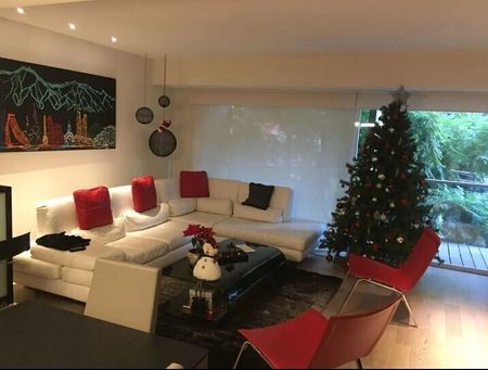 Cuenta con 3 Recamaras, la principal con vestidor, 2.1 Baños, T.V, con doble vidrio para aislar el ruido. Cocina Equipada con Refrigerador, Lavavajillas, Microondas, Cuarto de Lavado con lavadora y secadora. Tiene 3 Lugares de Estacionamiento.