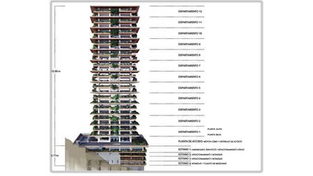 • 2 bodegas a nivel estacionamiento con un área aproximada de 10 m2 cada una y otra bodega en el sótano -4 con un área aproximada de 40 m2.