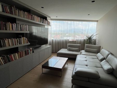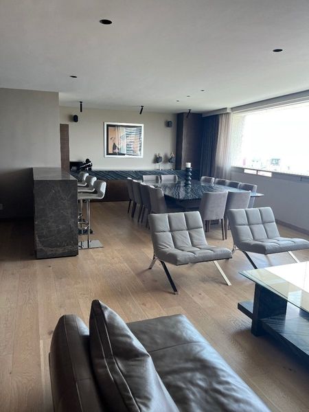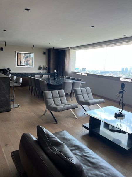 Cuenta con Sala y comedor con bar. Vista espectacular a la ciudad, Family grande para invitados, además de otro Family afuera de las recamaras, Oficina, 3 Recamaras con baño y vestidor, Cocina equipada y moderna.