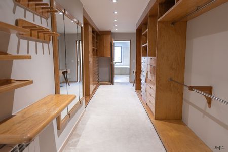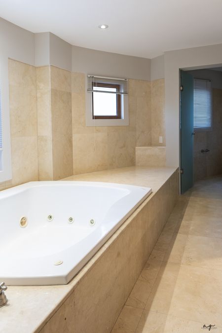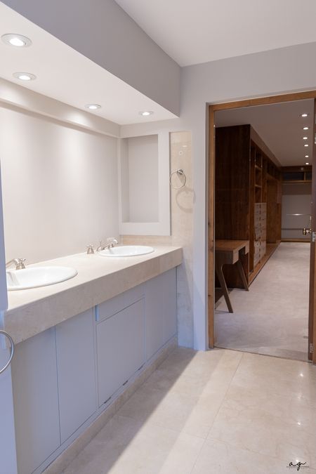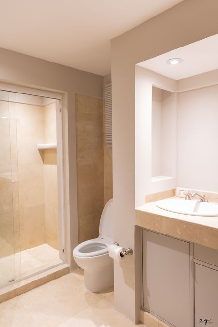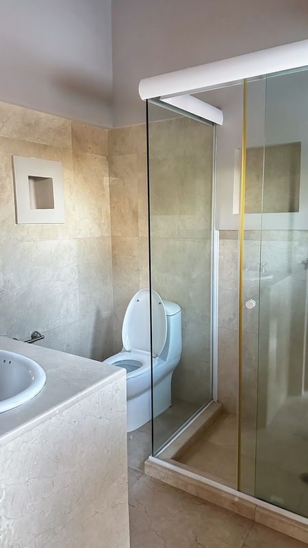 La casa tiene tres recámaras, cada una con su propio baño. La principal destaca por su vestidor amplio y tina; una de las recámaras secundarias cuenta también con vestidor y la otra con clóset.