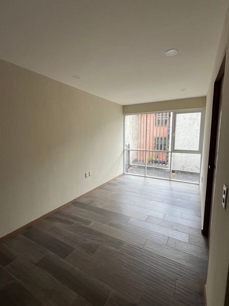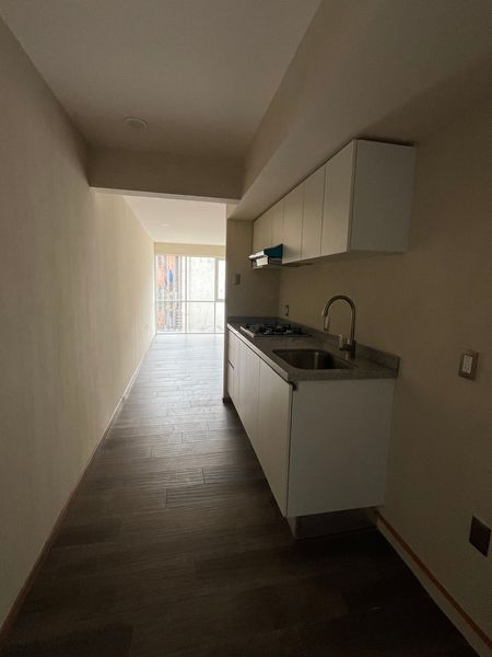 Proyecto totalmente terminado, frente al parque, seguridad 24 horas, vista a Paseo de la Reforma, a sólo 500m de la Alameda Central, transporte público accesible, dos recamaras sin closet, un baño completo, cocina integral abierta con barra de granito, área de servicio integrada, 7 niveles con elevador 6 departamentos por piso, el edificio cuenta con elevador, vigilancia y roof garden común equipado.