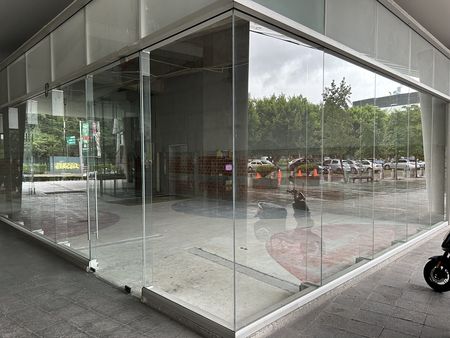 El espacio cuenta con doble altura y cancelaría de cristal en todo el frente, brindando una excelente iluminación natural y visibilidad para tu marca.