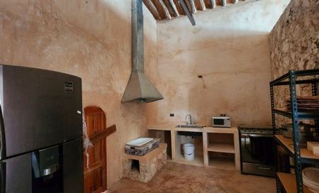 Cocina tradicional (La cocina cuenta con un comal tradicional y un molino de piedra para moler el maíz, conservando las prácticas culinarias auténticas de la región.)