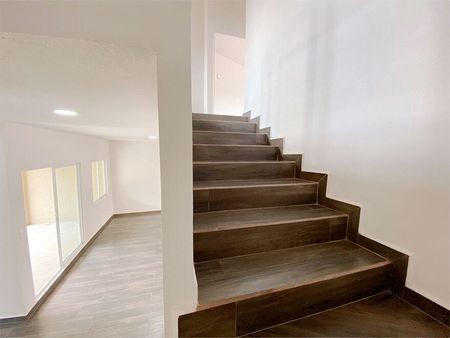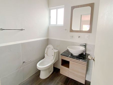 Planta Baja: Cochera eléctrica para 2 autos, Sala-Comedor, Cocina, 1/2 baño, Terraza lateral, Patio trasero.